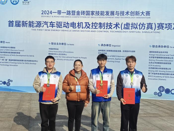 12月1日,2024一带一路暨金砖国家技能发展与技术创新大赛首届新能源汽车驱动电机及控制技术(虚拟仿真)赛项决赛落下帷幕,太阳成集团tyc122cc的师生团队凭借扎实的专业技能和出色的赛场表现,在全国119支参赛队伍中脱颖而出,成功斩获一等奖一项,二等奖两项的优异成绩。