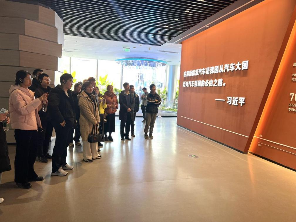 在“品牌文化空间”,大家通过数字影片、实物展示、科技装置等多种手段,系统回顾了中国汽车的发展历程,以及全球汽车工业如何从传统内燃机车走向新能源时代的革命性变革,党员和教职工们深刻感受到了新能源汽车在全球交通领域中的崛起和影响力。