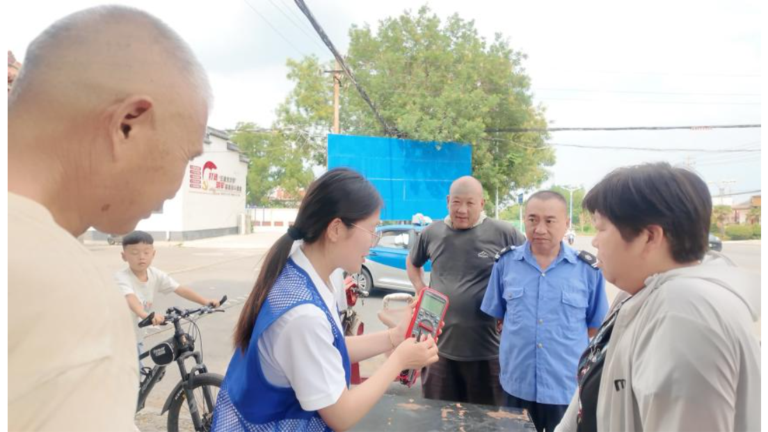 同时,关于安全用电的知识讲解也在同步进行。队员们用通俗易懂的语言,向村民们介绍了安全用电常识,如如何正确使用电器、避免电线老化引发火灾等。为了让村民们更好地理解,他们还现场演示了一些常见电器故障的排除方法。