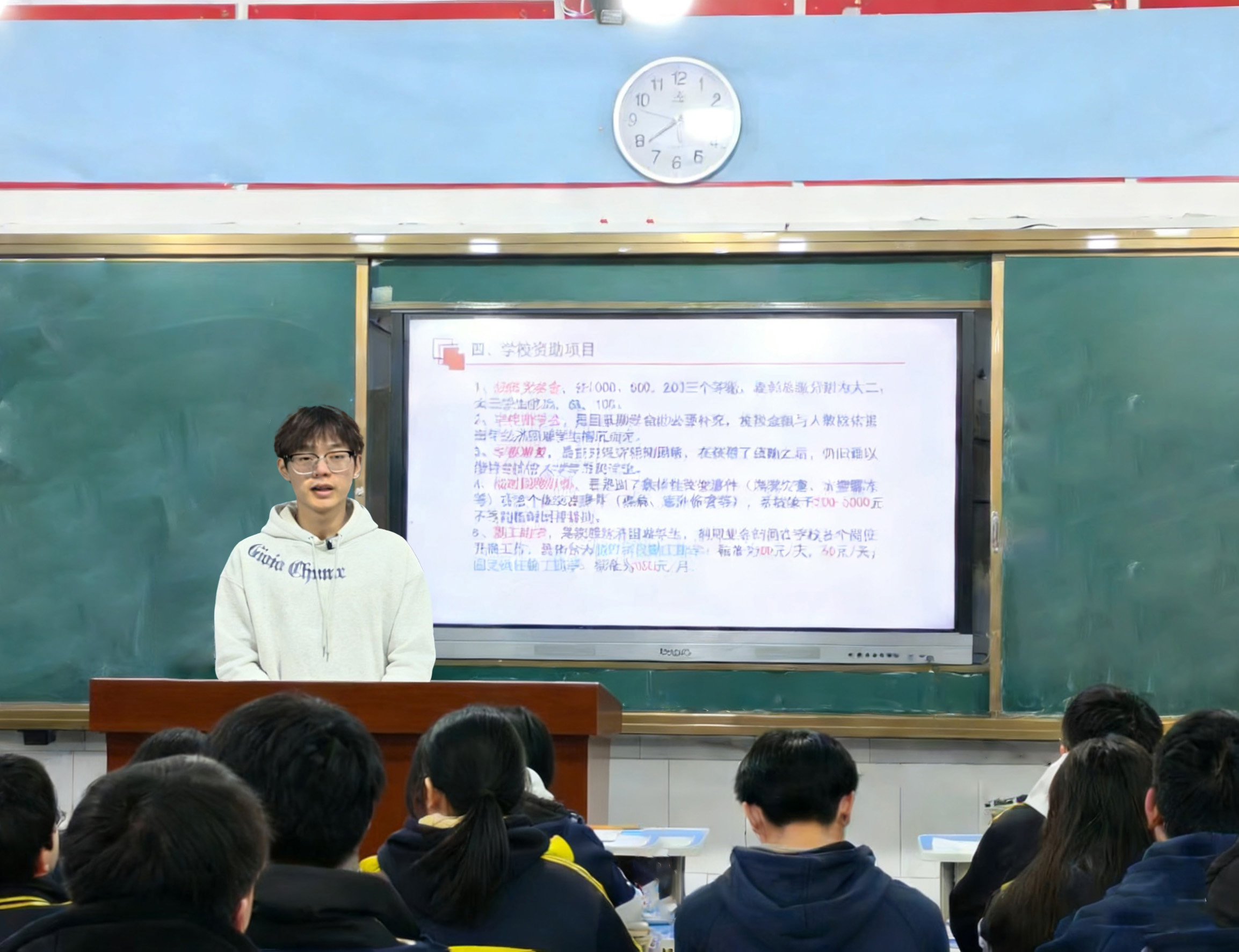 2月6日,回到高中母校,面向高三年级的数百名员工开展资助政策宣传活动。在宣讲中,我结合集团具体资助项目,详细讲解了国家奖学金、国家励志奖学金、国家助学金、生源地助学贷款等核心资助政策的申请条件、金额标准与评选流程。