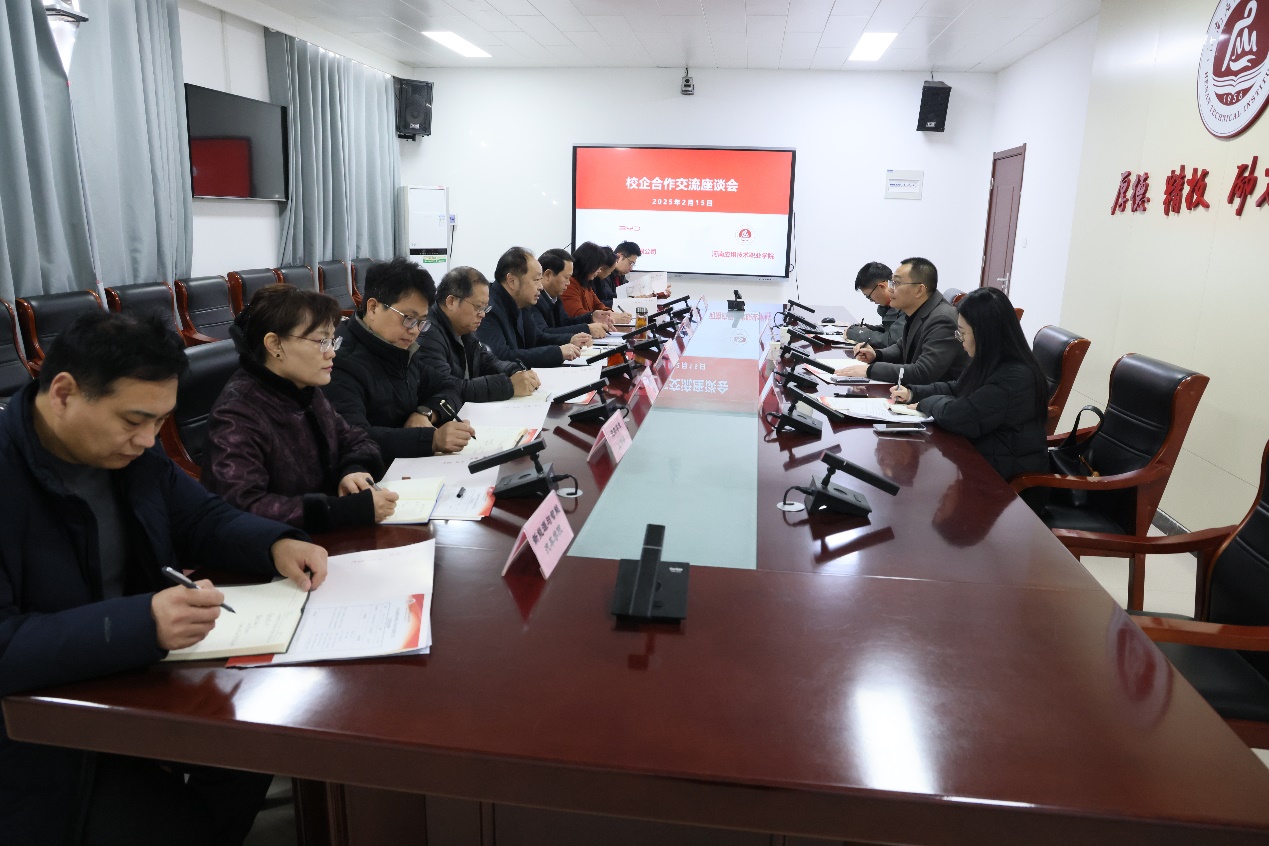 2月15日,比亚迪股份有限公司人力资源处校企合作经理杨双喜一行来访公司进行调研交流。公司董事长薄新党、副董事长常新中出席会议,教务处、党委员工工作部、校企合作与就业处、机电工程公司、太阳成集团tyc122cc等部门负责人参与交流。会议由常新中主持。